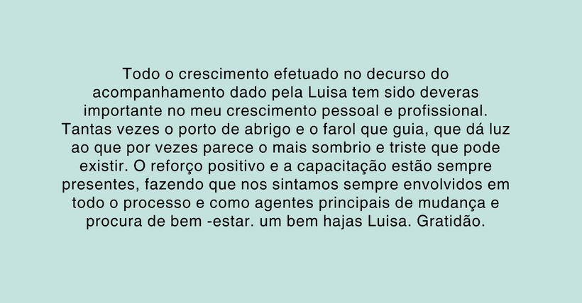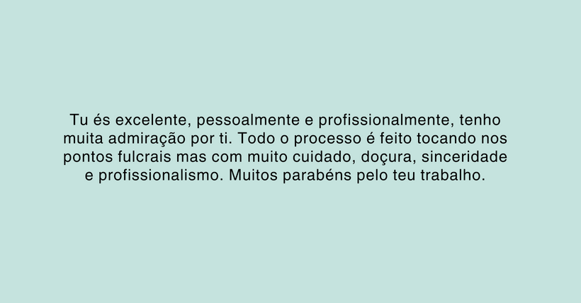 Gosto de ensinar às pessoas que acompanho por que motivo se comportam assim e que ferramentas práticas têm ao seu dispor - para utilizar de forma livre e criativa - para se manterem fortes, alegres e em conexão.